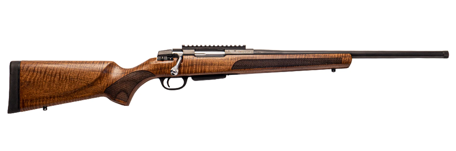 Für den Schaft wird ausgesuchtes Walnussholz verwendet. Im Lieferumfang ist sowohl ein drei als auch ein fünf Schuss-Magazin enthalten. Das System ist aus dem Vollen gefräst.