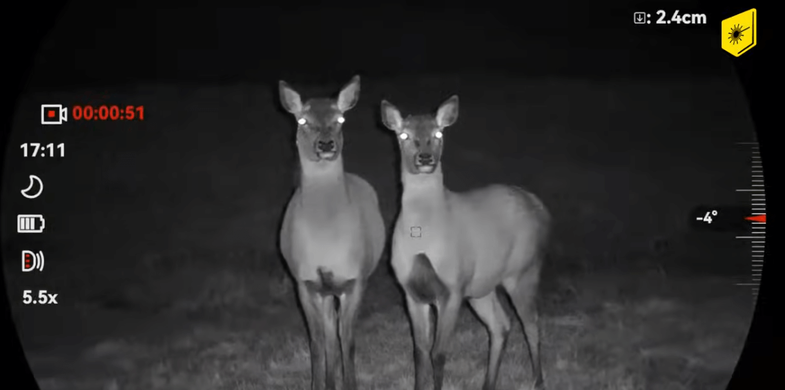 Für die optische Beobachtung kommt ein leistungsstarker 4K-CMOS-Sensor in Kombination mit einem 60-mm-F2.2-Objektiv zum Einsatz. Dieser liefert gestochen scharfe Tages- und Restlichtbilder mit einer Vergrößerung von 5,5- bis 22-fach. Die elektronische Bildstabilisierung ab 2× Zoom sowie Zoom Pro sorgen für deutlich ruhigere Bilder – auch bei hoher Vergrößerung.