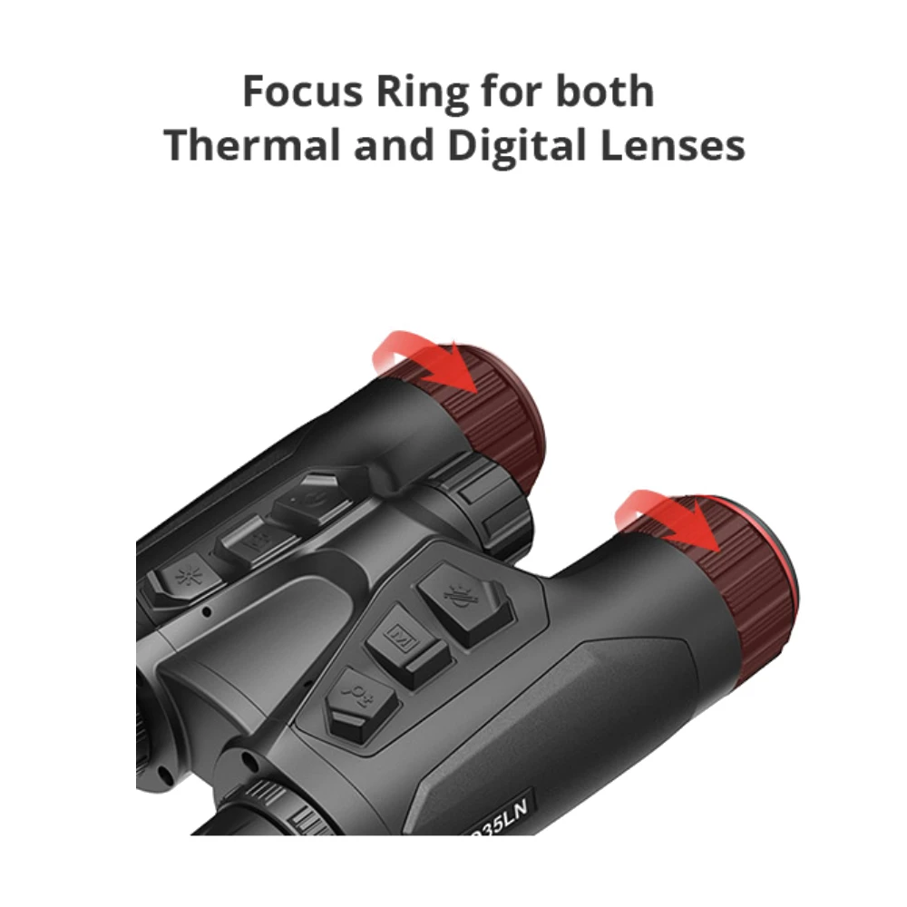 Die beiden Objektive des Hikmicro Habrok werden von Gummi Abdeckkappen geschützt, welche auch abgenommen werden können. Der Wärmebildkanal und der digitale Nachtsichtkanal haben eine eigene Scharfeinstellung, welche durch einen Drehring eingestellt werden. Auch der IR Strahler kann anhand eines Drehrings fokussiert werden.