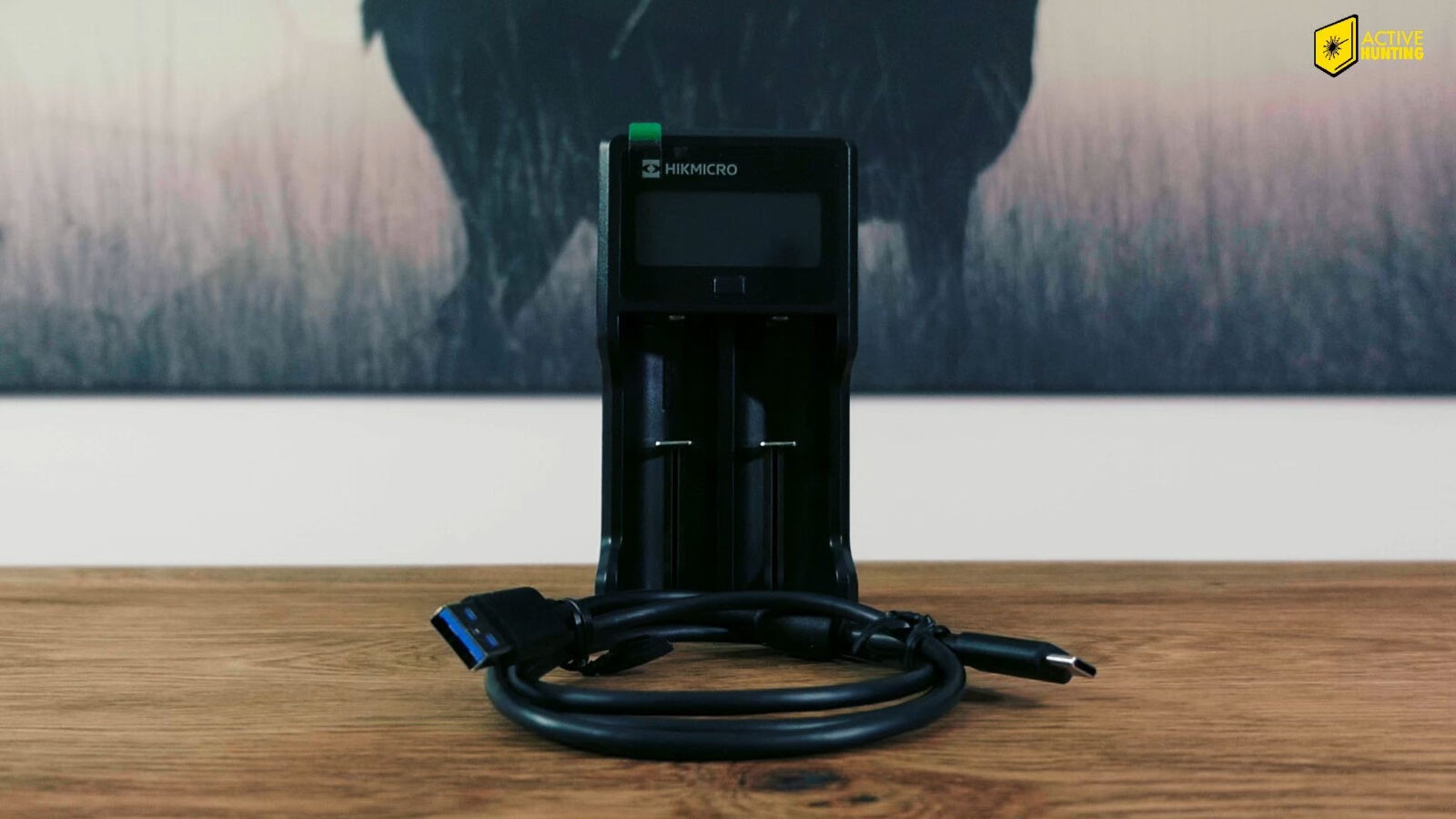 Zum Aufladen der beiden Akkus findet sich im Lieferumfang ein Ladegerät inkl. dem passenden USB-Kabel zum Anschluss an den PC oder Laptop.