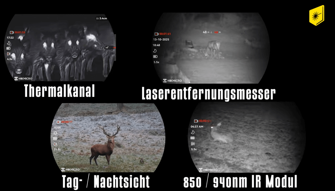 Das Gerät kombiniert mehrere optische Technologien in einem einzigen Handgerät, einen Wärmebildkanal, einen Tag- und Nachtsichtkanal, einen integrierten Laserentfernungsmesser sowie einen ER-Strahler zur Nutzung des Nachtsichtmodus bei völliger Dunkelheit.