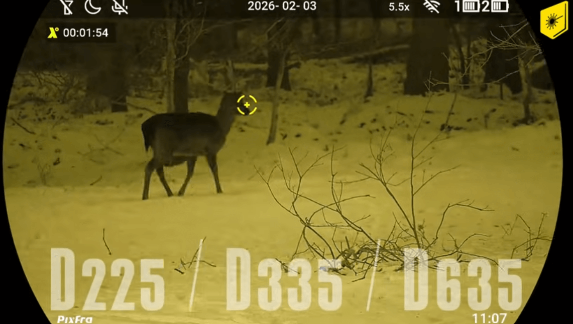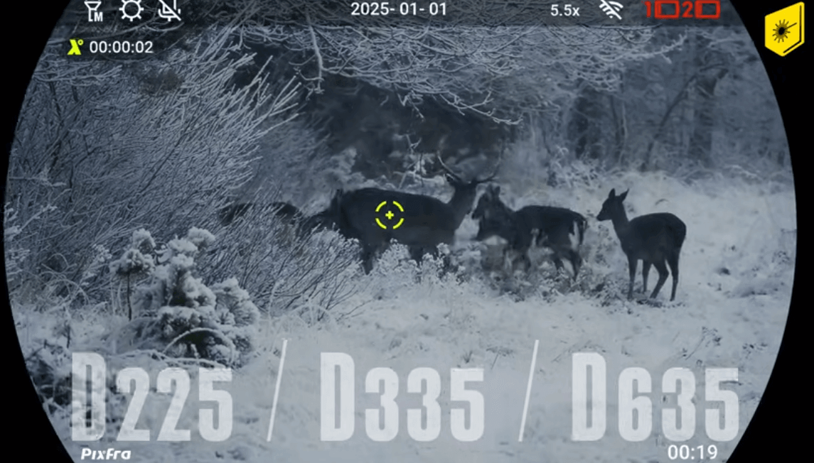 Im Lieferumfang befindet sich ein Aufheller mit einer Wellenlänge von 940 Nanometer, der gegen einen optional erhältlichen Aufheller mit 850 Nanometer ausgetauscht werden kann. Das D225 besitzt im Wärmebildkanal mit seinem 256er Sensor und einer 25 mm Brennweite ein Sehfeld von 12,2 m auf 100 m bei einer Grundvergrößerung von 4,4. Diese kann digital auf 34,4 fach erhöht werden. Die Sensorempfindlichkeit beträgt 18 mK. Zu haben ist das D225 4K bereits für 1159 €.