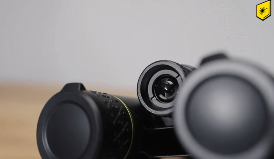 Der Fokus wird separat für den Tag- Nachtsichtkanal und den Thermalkanal über die Fokusringe am Objektiv eingestellt. Der Aufheller befindet sich zentral zwischen den Objektiven, darunter ist der Laserentfernungsmesser sehr diskret und ansprechend verpackt untergebracht. Mit ihm können Distanzmessungen von bis zu 1000 m vorgenommen werden.