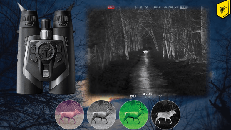 Symbion steht für zwei Sensoren, ein 4K Digitalsensor und ein Thermalsensor in einem Gerät mit Picture and Picture Modus und einem Laserentfernungsmesser.