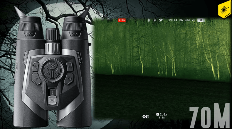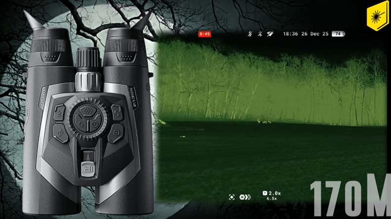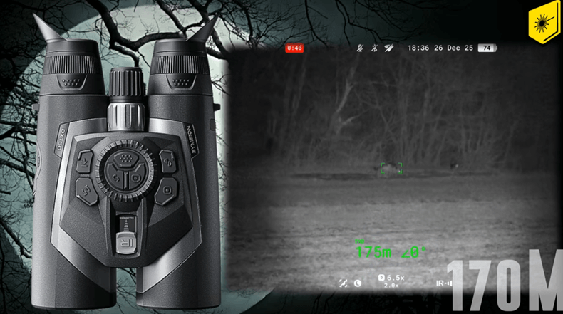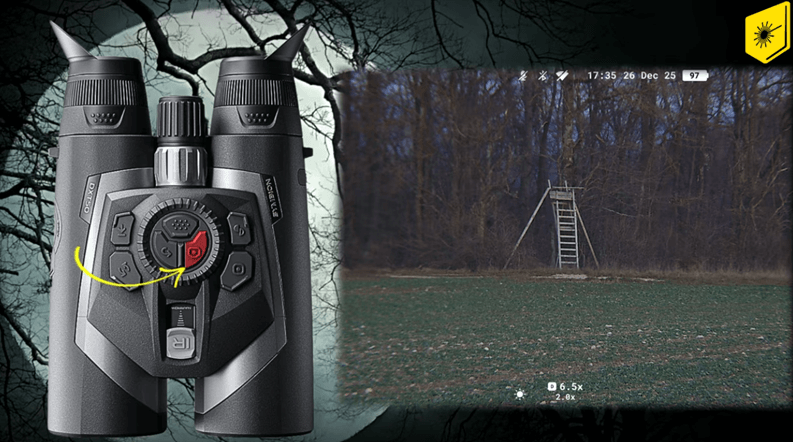 Der digitale Tag- und Nachtsichtkanal ist bei beiden Geräten identisch. Hier verrichtet ein 3840 x 2160 4K CMOS Sensor sein Werk. Der digitale Vergrößerungsbereich umfasst 6,5 bis 26 fach. In der 6,5 fachchen Grundvergrößerung bemisst sich das Sehfeld auf 10,2 m auf 100 m.
