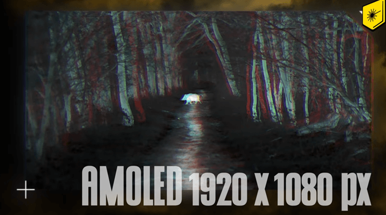 Für den Digitalmodus bei Nacht besitzt das Gerät einen fokussierbaren IR-Strahler mit drei Leistungsstufen und 850 Nanometer Wellenlänge. Eine Erhöhung der Leistungsstufe ist immer dann erforderlich, wenn die Entfernung zum Beobachtungsobjekt zunimmt. Brillenträger werden sich über den weiten Verstellbereich von -5 bis +5 Dioptrin freuen. Der AMOLED Bildschirm glänzt mit einer Auflösung von über zwei Millionen Bildpunkten.