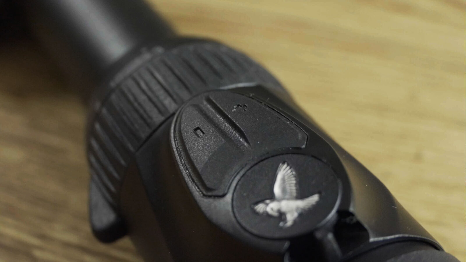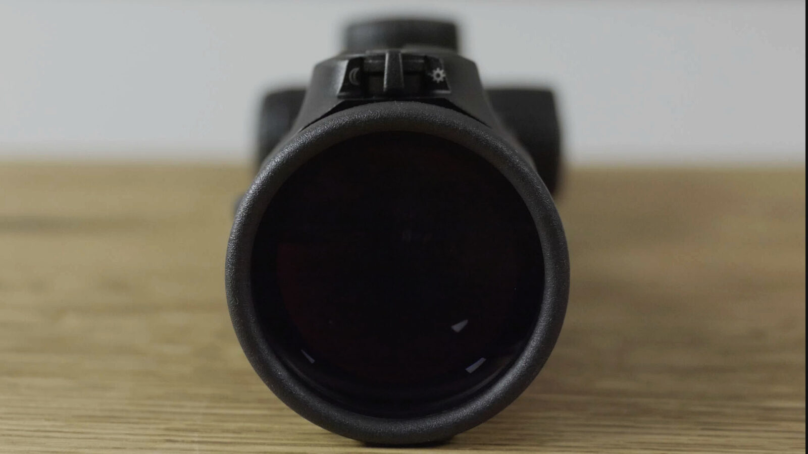 Das Leuchtabsehen sitzt auf dem Okular und bietet großen Komfort bei der Einstellung. Mittig sitzt ein Wahlschalter, welcher es ermöglicht das Leuchtabsehen auf Tag oder Nachtmodus umzustellen. Somit kann der Anwender die Abstimmung des Leuchtabsehens im Vorfeld anpassen. Sei es die Drückjagd am Tage oder die Nachtjagd auf Schwarzwild. Insgesamt stehen 64 Helligkeitsstufen zur Verfügung, welche über eine Plus und eine Minustaste gesteuert werden können. Der Punkt ist extrem fein und wird scharf abgegrenzt.