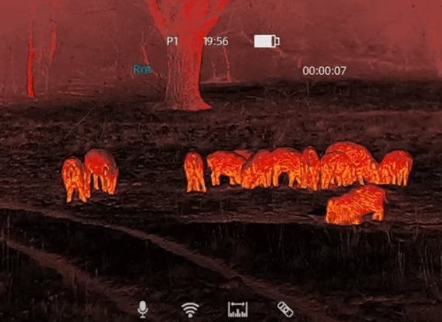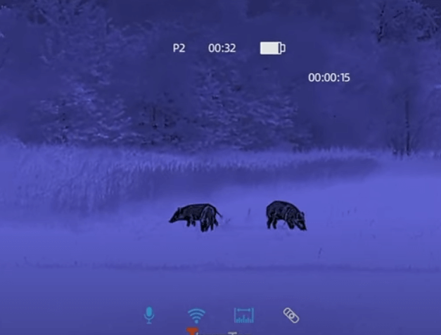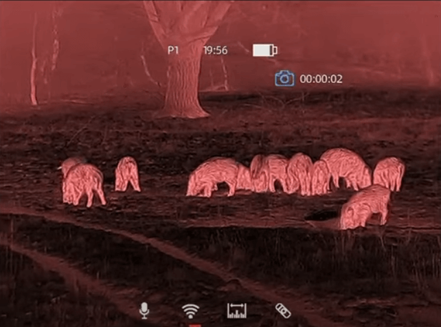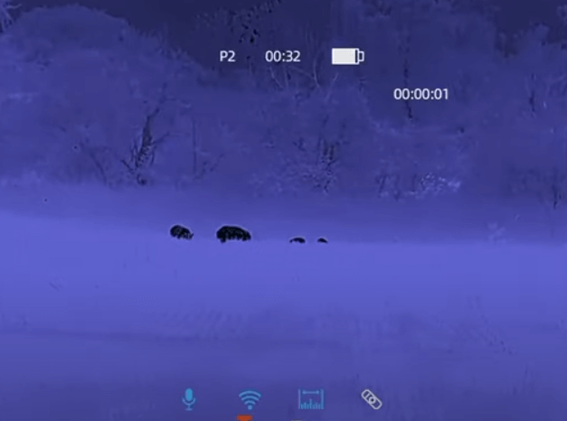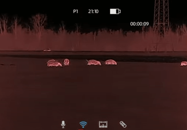 Das Bild selbst liefert sehr hohe Details und auch das Gelände wird plastisch dargestellt. Auch können hohe Vergrößerungen am Zielfernrohr eingestellt werden, ohne einen starken Qualitätsverlust. Hier seht ihr Sauen auf etwa 100 Meter.