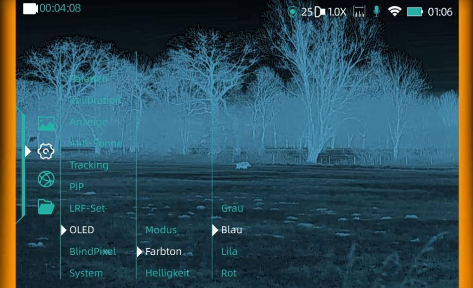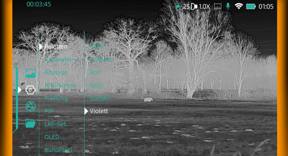 ThermTec bietet unter allen Geräten für den Konsumentenmarkt die vielfältigsten Einflussmöglichkeiten auf die Bilddarstellung. Neben Helligkeit und Kontrast kannst du bei ThermTec auch die digitale Bildschärfe und das Bildrauschen anpassen. Hier haben wir die Bildglättung einmal komplett abgeschaltet.